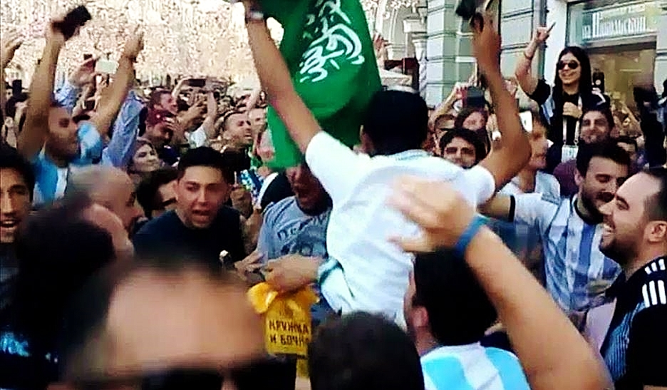 FIFA World Cup 2018 Russia круто набирает обороты. К 18 часам по Москве 18 июня 2018 года болельщики чемпионата мира по футболу 2018 захватили центр Москвы и превратили его в невиданный до этих времен город болельщиков. Бушуя и переливаясь, словно огромный океан, людские реки болельщиков, то там, то тут, скандируя названия любимых команд, желали им победы! Но, главное, как говорят в России, чтобы стекла в окнах не побили…
