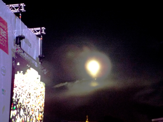 Ведущий концерта предложил всем участникам попросить небесные силы остановить ливень. Пели специальную песню, кричали заклинания, просили и просили… И мольба зрителей была услышана. Как только на сцену вышла Morcheeba, облака разошлись, засияла полная луна и пошло суперлуние…