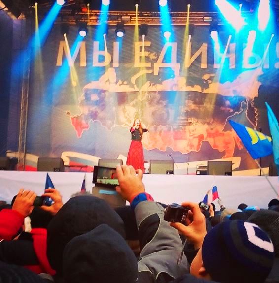 09.112014_1Поёт Юлия Савичева в День народного единства 2014. Фрагмент. Автор фото председатель НСНБР А.Г.Огнивцев Instagram